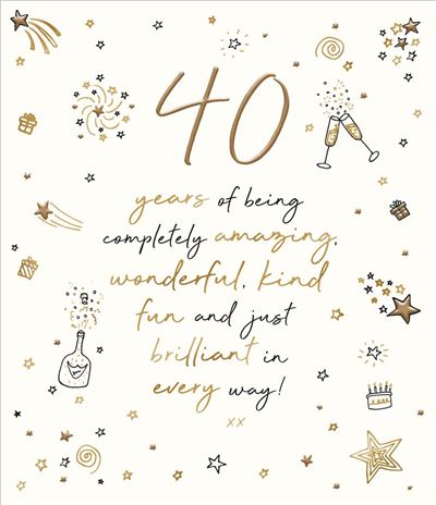 Original price £2.49 - Original price £2.49Original price£2.49£2.49 - £2.49Current price £2.49| /Celebrate another year with our sophisticated 40th birthday card, a refined way to mark life's important milestones. This elegantly designed card d...