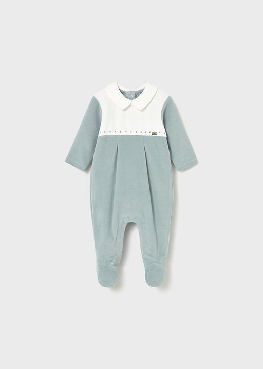 Original price £23.99 - Original price £23.99Original price£23.99£23.99 - £23.99Current price £23.99| /This Mayoral newborn boys’ velour onesie features a teal bottom with a contrasting white vest top and collar. It includes five buttons on the back ...