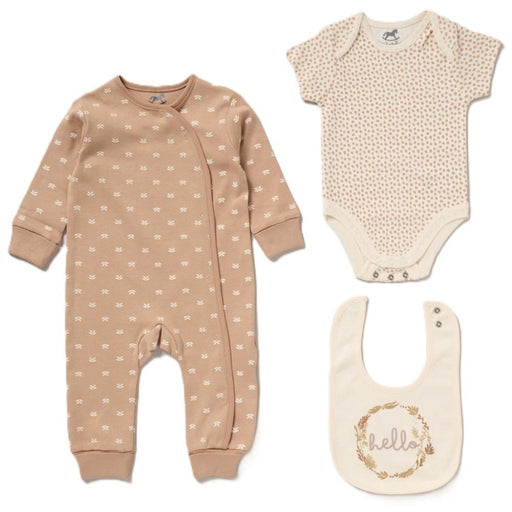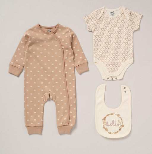 Original price £14.99 - Original price £14.99Original price£14.99£14.99 - £14.99Current price £14.99| /This Rock a Bye Boutique Hello 3 piece layette set includes a long sleeve all-in-one romper sleepsuit featuring a charming Hello Bow design, with c...