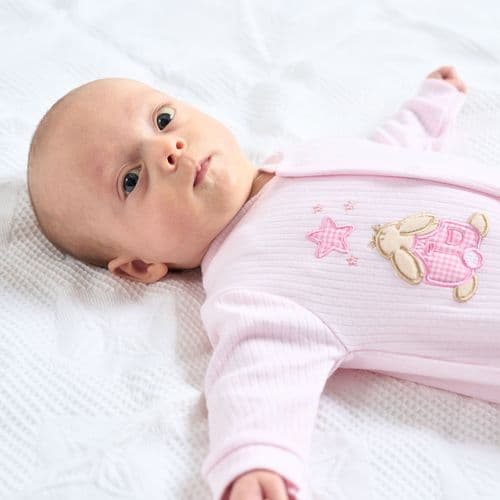 Dandelion Rabbit & Star Ribbed Sleepsuit Pink