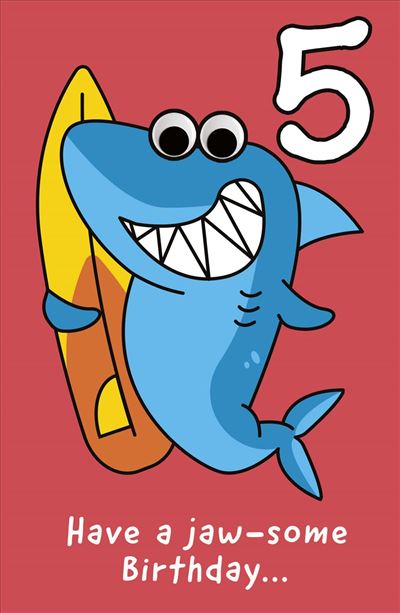 Original price £2.49 - Original price £2.49Original price£2.49£2.49 - £2.49Current price £2.49| /5th Birthday Card Mark this milestone with distinction using this imaginative card from UK Greetings, featuring a charming shark wielding a surfboa...