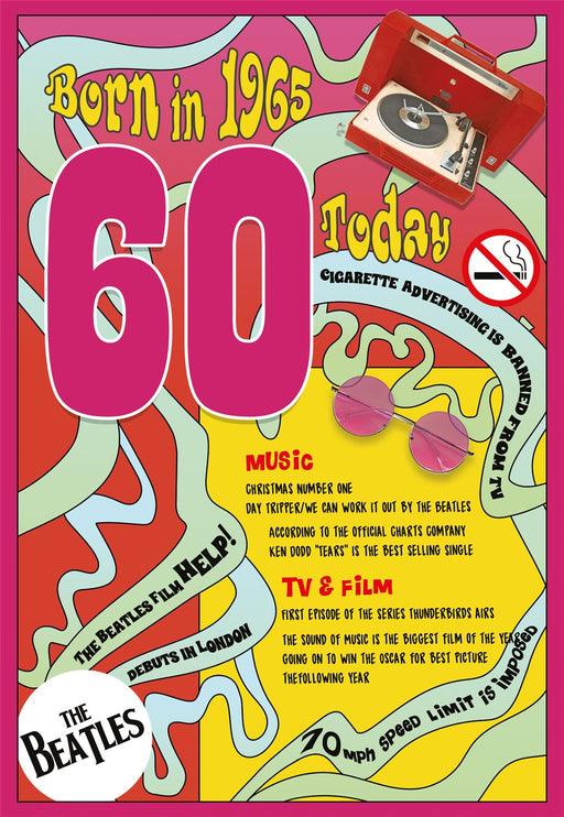 Original price £2.09 - Original price £2.09Original price£2.09£2.09 - £2.09Current price £2.09| /This playful birthday card from Cherry Orchard celebrates those born in 1955 with a fun fact, set against vibrant psychedelic pink and yellow tones...