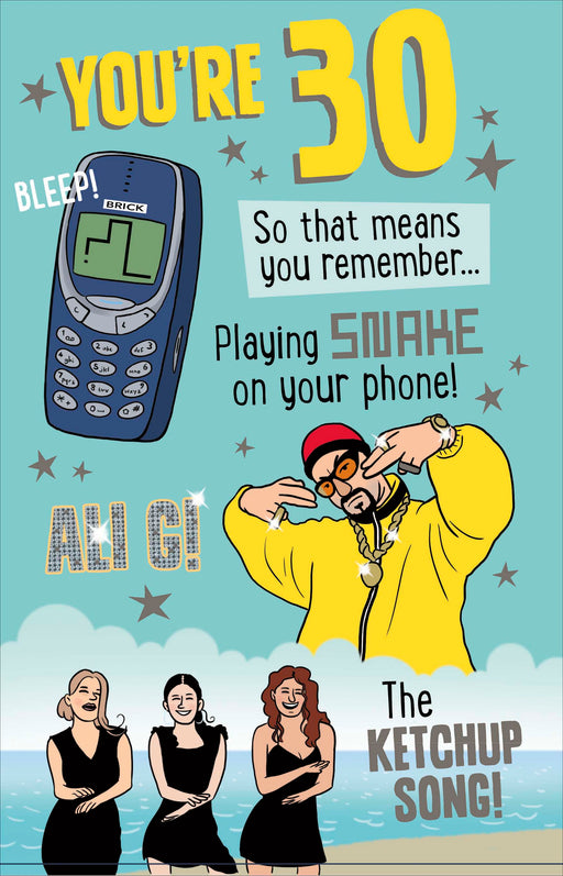 Original price £2.99 - Original price £2.99Original price£2.99£2.99 - £2.99Current price £2.99| /Celebrate a 30th birthday with this sophisticated UK Greetings card featuring a humorous reflection on the passage of time, including nostalgic ref...