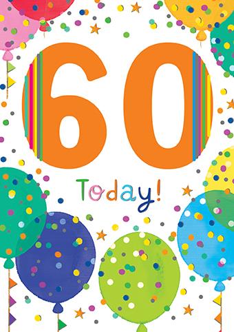 Original price £1.99 - Original price £1.99Original price£1.99£1.99 - £1.99Current price £1.99| /This sophisticated 60th birthday card from Paper Rose features bold, vibrant colors with a prominent "60 Today" and festive balloons. The elegant d...