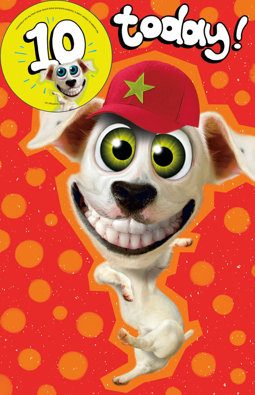Original price £2.49 - Original price £2.49Original price£2.49£2.49 - £2.49Current price £2.49| /Celebrate a 10th birthday with this joyful card from UK Greetings, featuring a grinning dog in vibrant red tones. The cheerful design captures the ...