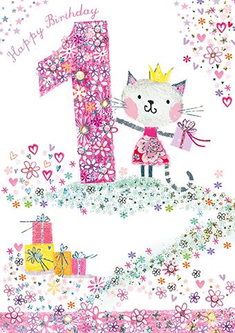 Paper Rose 'Age 1 Cat' Birthday Card