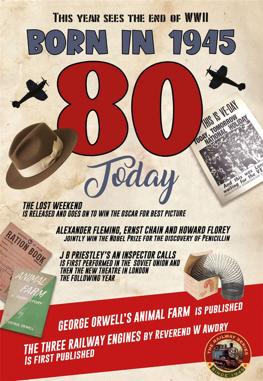 Original price £2.09 - Original price £2.09Original price£2.09£2.09 - £2.09Current price £2.09| /This playful birthday card from Cherry Orchard celebrates those born in 1945 with a fun fact, set against vibrant blue and cream tones. Its cheerfu...