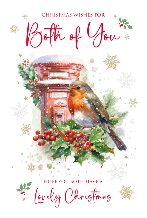 Original price £2.50Original price £2.50 - Original price £2.50Original price £2.50Current price £1.50£1.50 - £1.50Current price £1.50| /This sophisticated Christmas card from Cherry Orchard features a charming red robin perched on a holly branch beside a classic red p...