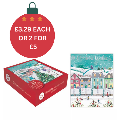 Original price £3.29 - Original price £3.29Original price£3.29£3.29 - £3.29Current price £3.29| /The Tiger Feet 22 Luxury Christmas Boxed Cards showcase a charming Christmas Village scene, capturing the warmth of the holiday season. Each card i...