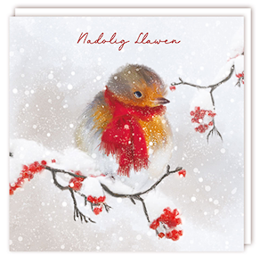 Tracks 'Mixed Welsh Christmas Wrapped Robin Design' Christmas Card Pack of 5