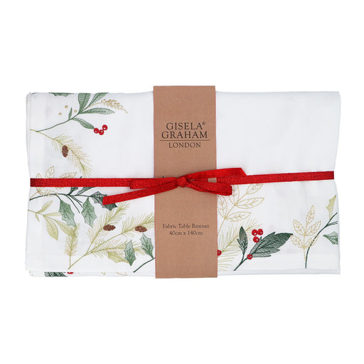 Gisela Graham Embroidered Sprigs Christmas Table Runner 140cm