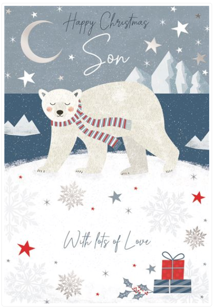 Original price £2.50Original price £2.50 - Original price £2.50Original price £2.50Current price £1.50£1.50 - £1.50Current price £1.50| /Celebrate the festive season with this playful Christmas card designed especially for a wonderful son and his family. Full of warmth and cheer, it’...