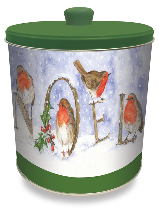 Grandma Wild's Embossed Robin Noel Barrel Tin