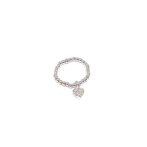 Clementine Rachel Diamond Heart Charm Ring - Silver