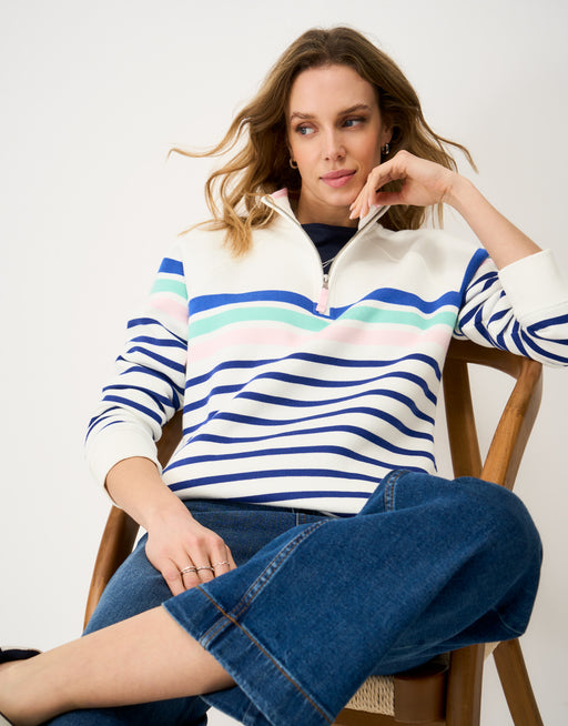 Crew Clothing Women's Half Zip Sweatshirt In White Green Blue