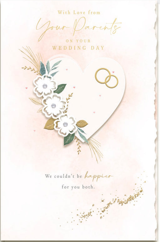 Original price £5.29 - Original price £5.29Original price£5.29£5.29 - £5.29Current price £5.29| /Celebrate the wedding day with this elegant UK Greetings card from parents, featuring a refined ivory and cream palette. Adorned with a gold heart,...