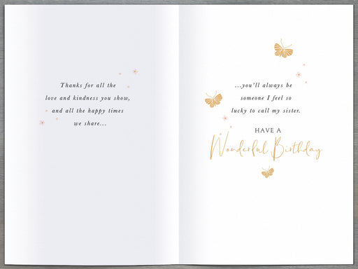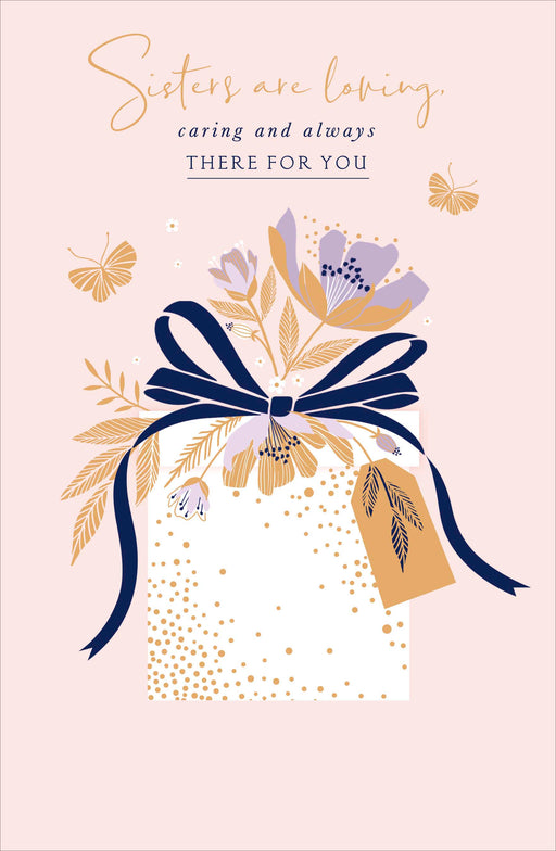 Original price £3.30 - Original price £3.30Original price£3.30£3.30 - £3.30Current price £3.30| /Celebrate your sister’s birthday with this elegant UK Greetings card, featuring a beautifully wrapped white gift accented with gold tones and delic...