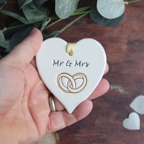 Broadlands Pottery Mr & Mrs Rings Hanging Heart