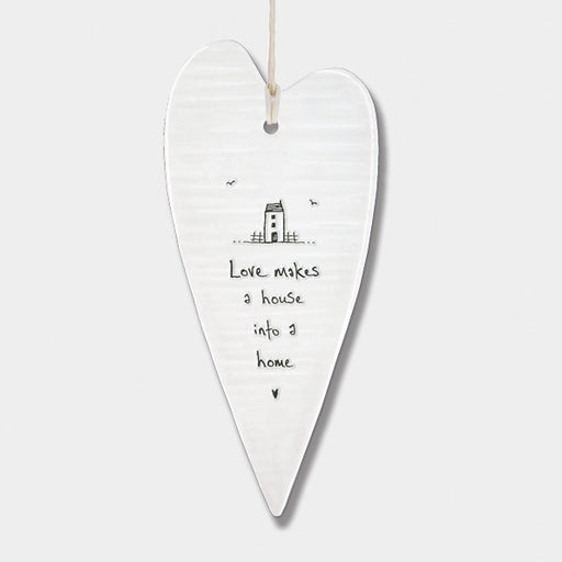 East of India Long Wobbly Porcelain Heart - Love Makes A House into A Home