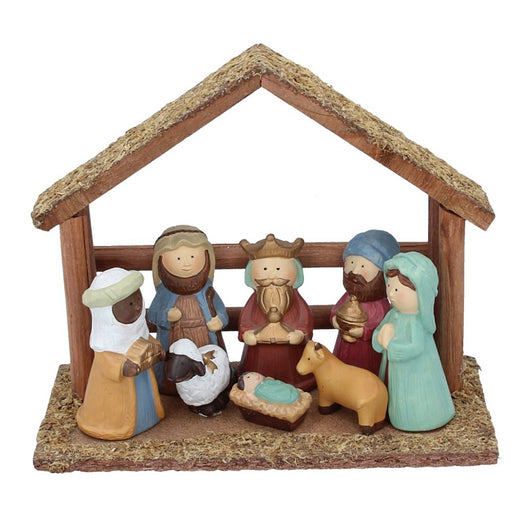 Gisela Graham Ceramic Nativity Figures In Ceramic Stable Ornament