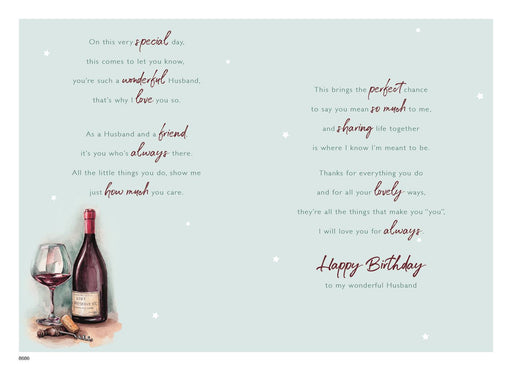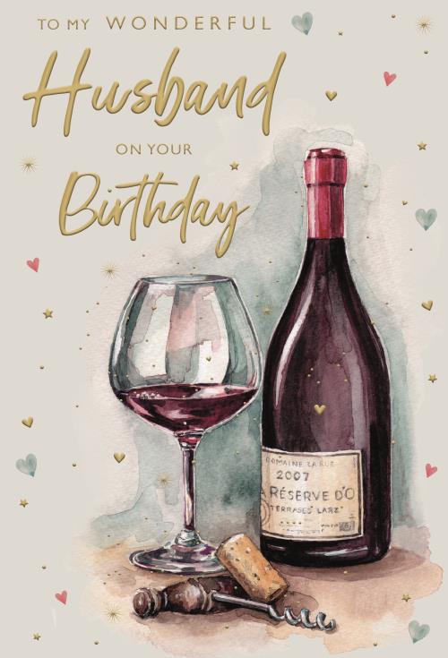 Original price £2.50 - Original price £2.50Original price£2.50£2.50 - £2.50Current price £2.50| /Celebrate your husband’s birthday with this sophisticated card featuring warm tones and an elegant design of a bottle of wine, glass, and bottle op...