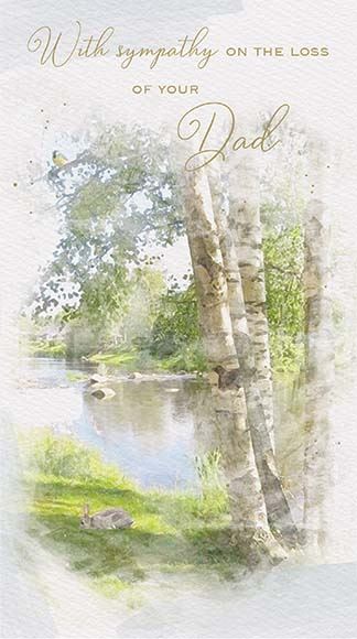 Original price £2.20 - Original price £2.20Original price£2.20£2.20 - £2.20Current price £2.20| /Express your deepest sympathy for the loss of a Dad with a refined card featuring a tranquil countryside pond and a thoughtful message. This elegan...
