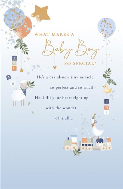 Original price £3.99 - Original price £3.99Original price£3.99£3.99 - £3.99Current price £3.99| /Celebrate the arrival of a new baby boy with this charming card from UK Greetings. Featuring soothing blue tones and a delightful arr...