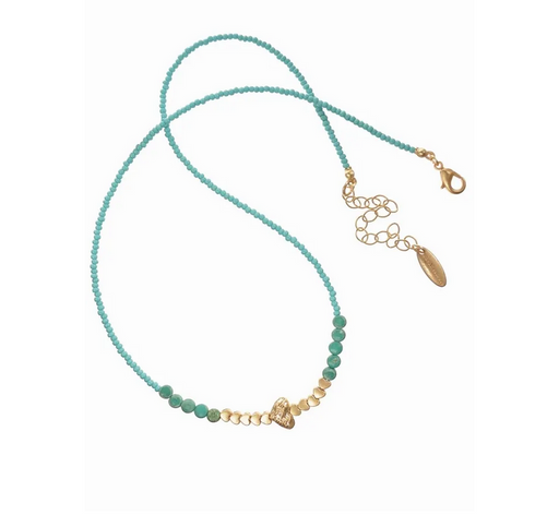 Hot Tomato Heart to Heart Stone & Crystal Turquoise/Gold Necklace
