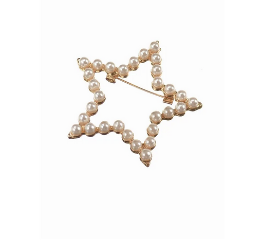Hot Tomato Frame Of Pearls Star Gold Brooch