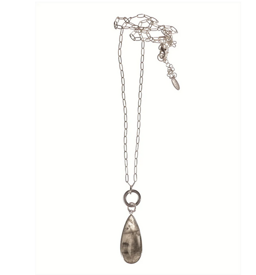 Hot Tomato Framed Stone Teardrop Pendant Worn Silver/Grey Necklace