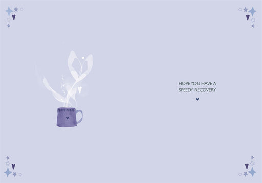 Express warm get well wishes with a sophisticated card featuring a blue-toned mug labeled "Hug in a Mug," accompanied by biscuits. This charming de...