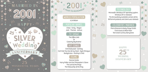 ICG 'Silver Wedding Anniversary Married In 2001' Wedding Card