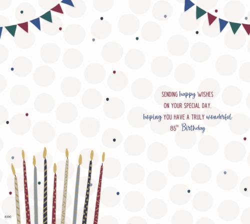 Original price £2.20 - Original price £2.20Original price£2.20£2.20 - £2.20Current price £2.20| /Celebrate that special 85th birthday with this refined card featuring vibrant candles and bunting motifs. Its elegant design expresses your love an...