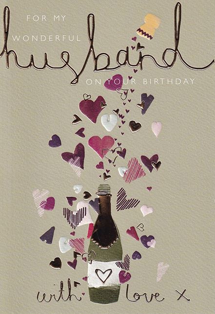 Original price £2.50 - Original price £2.50Original price£2.50£2.50 - £2.50Current price £2.50| /Celebrate your husband’s birthday with this refined card featuring a champagne bottle overflowing with hearts on a warm, brown toned background . I...