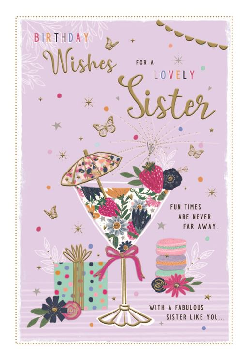 Original price £2.50 - Original price £2.50Original price£2.50£2.50 - £2.50Current price £2.50| /Celebrate your sister’s birthday with this sophisticated card featuring soft pink tones and an elegant design of cocktail glasses and presents. The...