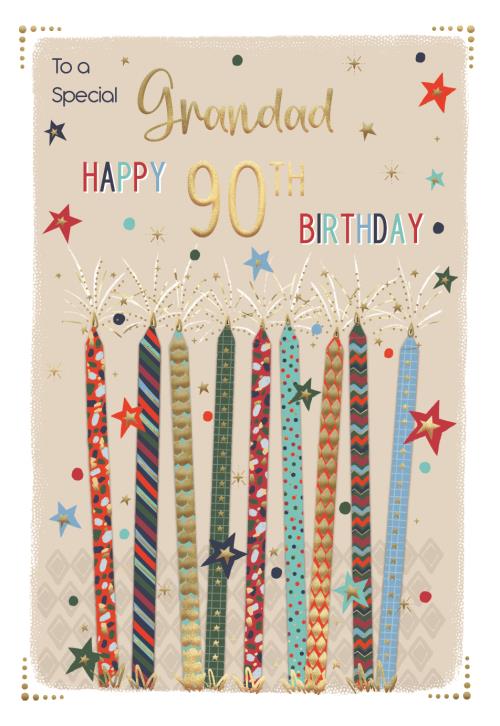 Original price £2.50 - Original price £2.50Original price£2.50£2.50 - £2.50Current price £2.50| /Celebrate your grandad’s 90th birthday with this sophisticated card featuring a vibrant design of rainbow-colored candles. The elegant yet joyful i...