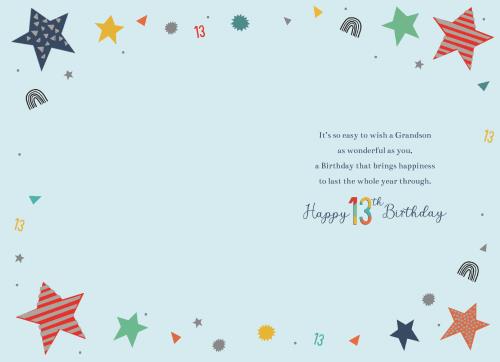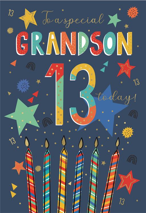 Original price £2.50 - Original price £2.50Original price£2.50£2.50 - £2.50Current price £2.50| /Celebrate your special grandson’s 13th birthday with this sophisticated card featuring a vibrant rainbow candle design. The elegant yet lively moti...