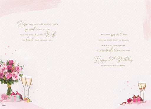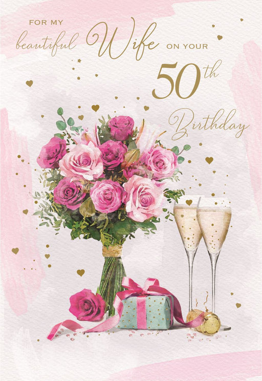 Original price £2.50 - Original price £2.50Original price£2.50£2.50 - £2.50Current price £2.50| /Celebrate your wife’s 50th birthday with this elegant card featuring a refined design of flowers and champagne. The sophisticated imagery perfectly...