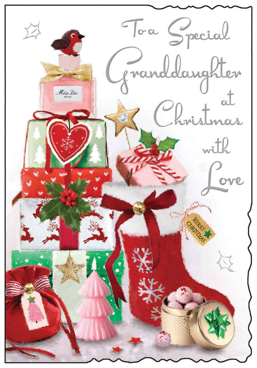 Jonny Javelin 'Granddaughter Stocking Presents' Christmas Card
