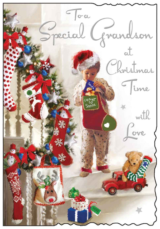 Jonny Javelin 'Grandson Stocking Sack' Christmas Card