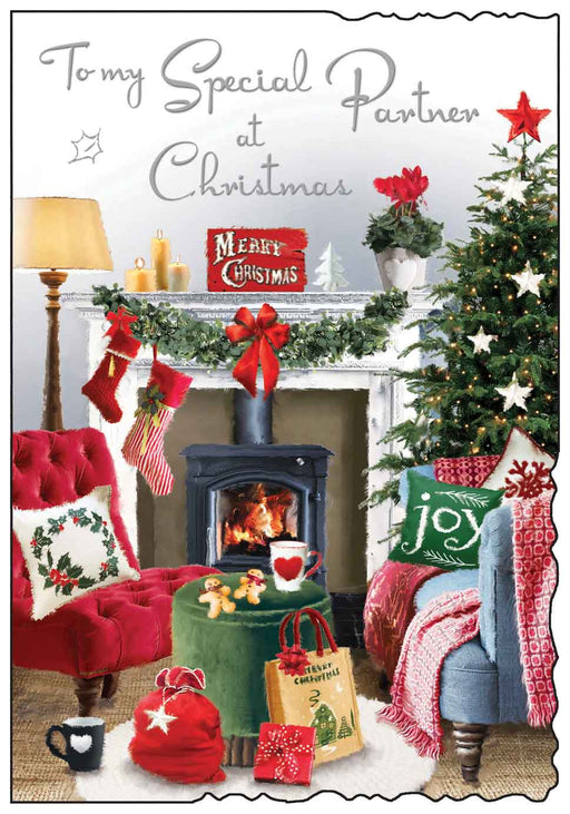 Original price £2.50Original price £2.50 - Original price £2.50Original price £2.50Current price £1.50£1.50 - £1.50Current price £1.50| /This Christmas card from Jonny Javelin captures a warm festive living room scene for Son and Partner, featuring a beautifully dressed tree, a decor...