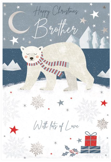 Original price £1.99 - Original price £1.99Original price£1.99£1.99 - £1.99Current price £1.99| /Send playful Christmas cheer to your brother with this charming card from Kingfisher Cards. Featuring a polar bear...