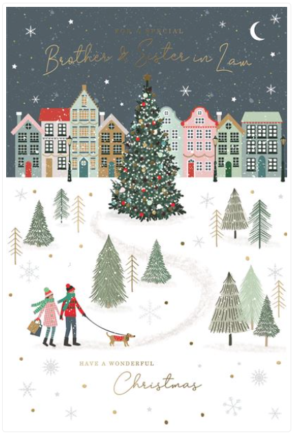 Original price £2.50 - Original price £2.50Original price£2.50£2.50 - £2.50Current price £2.50| /This sophisticated Christmas card from Kingfisher Cards depicts a peaceful village winter scene with a couple walking their dog....
