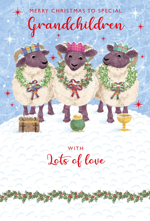 Original price £2.29Original price £2.29 - Original price £2.29Original price £2.29Current price £1.37£1.37 - £1.37Current price £1.37| /This sophisticated Christmas card from Nigel Quiney features a vibrant winter scene with three wise sheep wearing crowns, bearing gifts of Gold, Fr...