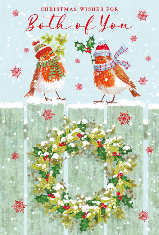 Original price £2.29Original price £2.29 - Original price £2.29Original price £2.29Current price £1.37£1.37 - £1.37Current price £1.37| /This sophisticated Christmas card from Nigel Quiney features a vibrant winter scene with two festively dressed robins perched on a fence adorned wi...