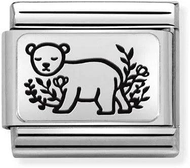 Nomination Classic Silver Plates Bear With Flowers Charm