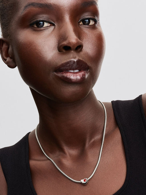 PANDORA Studded Chain Necklace Heart Clasp Sterling Silver