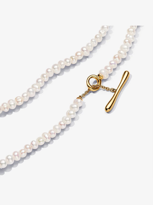 Pandora Treated Freshwater Cultured Pearls T-Bar Collier Necklace 14k Gold Plating
