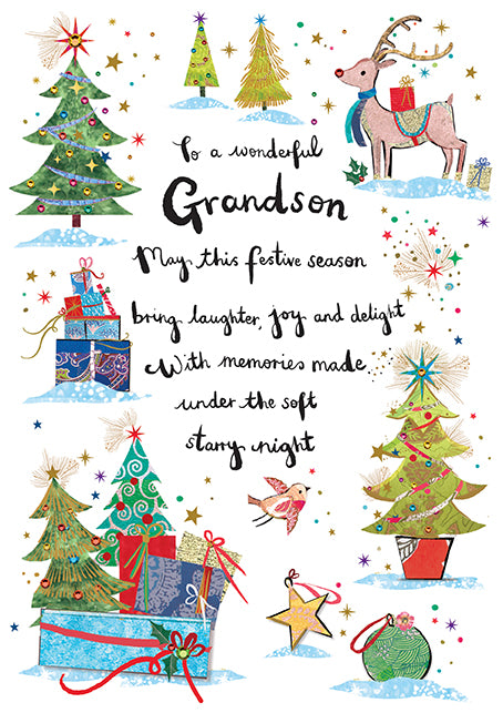 Original price £2.99Original price £2.99 - Original price £2.99Original price £2.99Current price £1.79£1.79 - £1.79Current price £1.79| /Delight your grandson this holiday with a playful Christmas card from Paper Rose. Featuring festive borders showcasing reindeer, trees, presents, a...