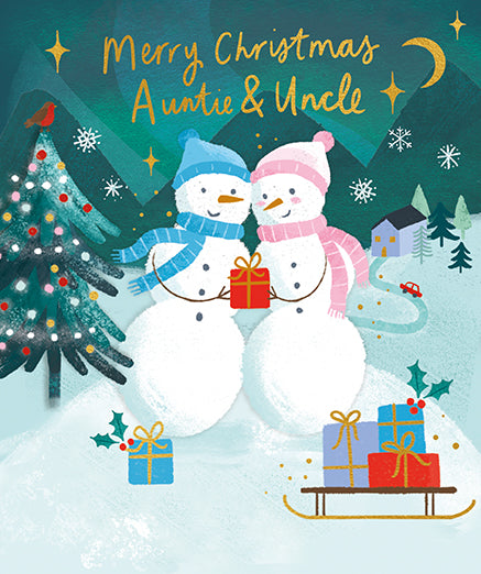 Paper Rose 'Auntie & Uncle Snow Couple' Christmas Card